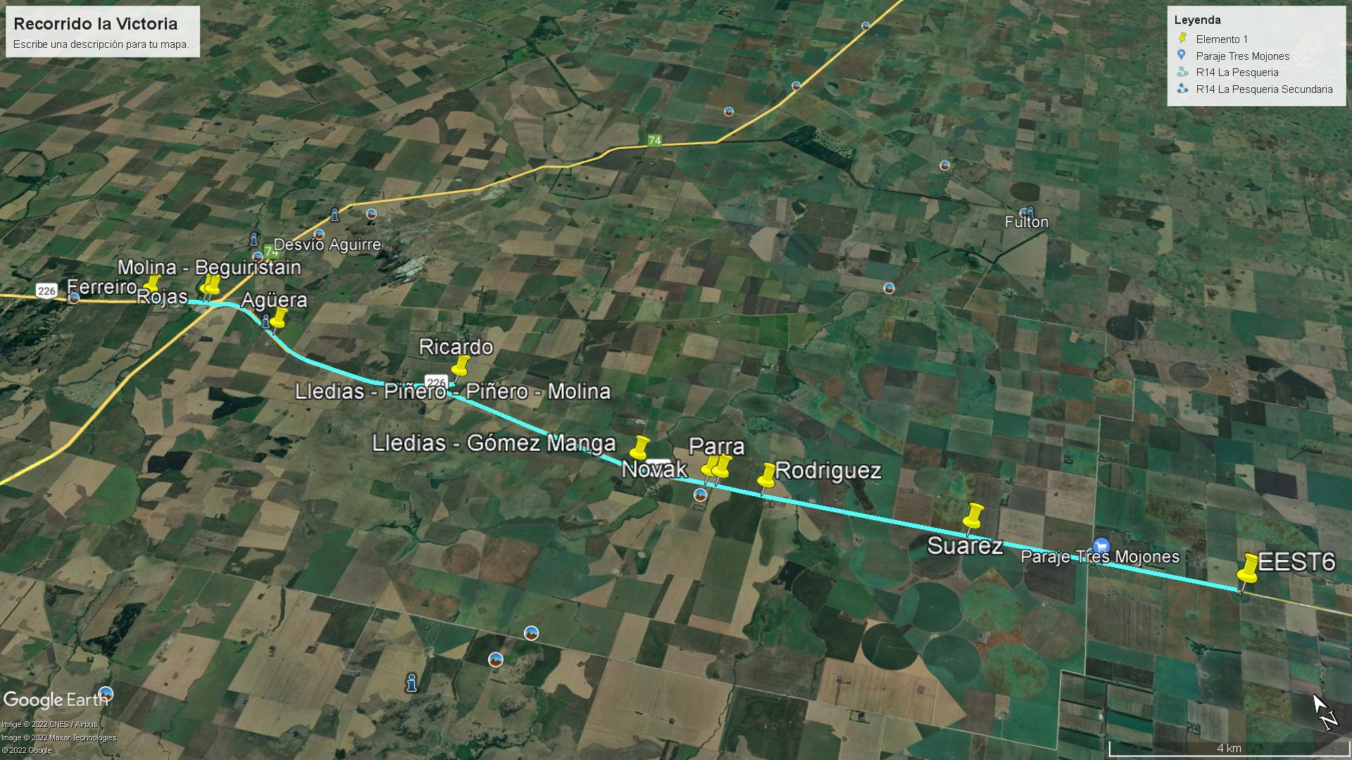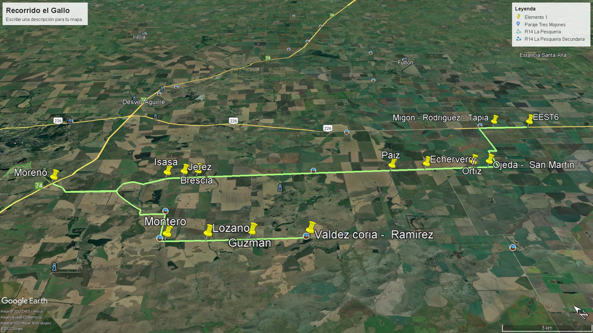 En este recorrido hay un total de 20 alumnos. Su trayecto es de 44 km, consta de un camino de tierra, bastante deteriorado, con pozos y falta de mantenimiento. Durante el camino no hay señal. El alumno que tiene más distancia de la casa hasta la parada es de 8 km.