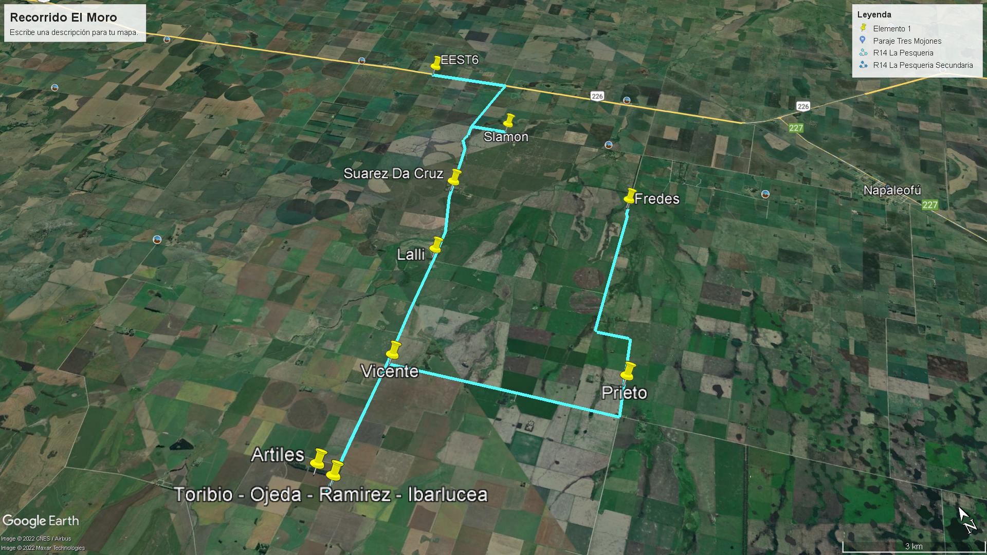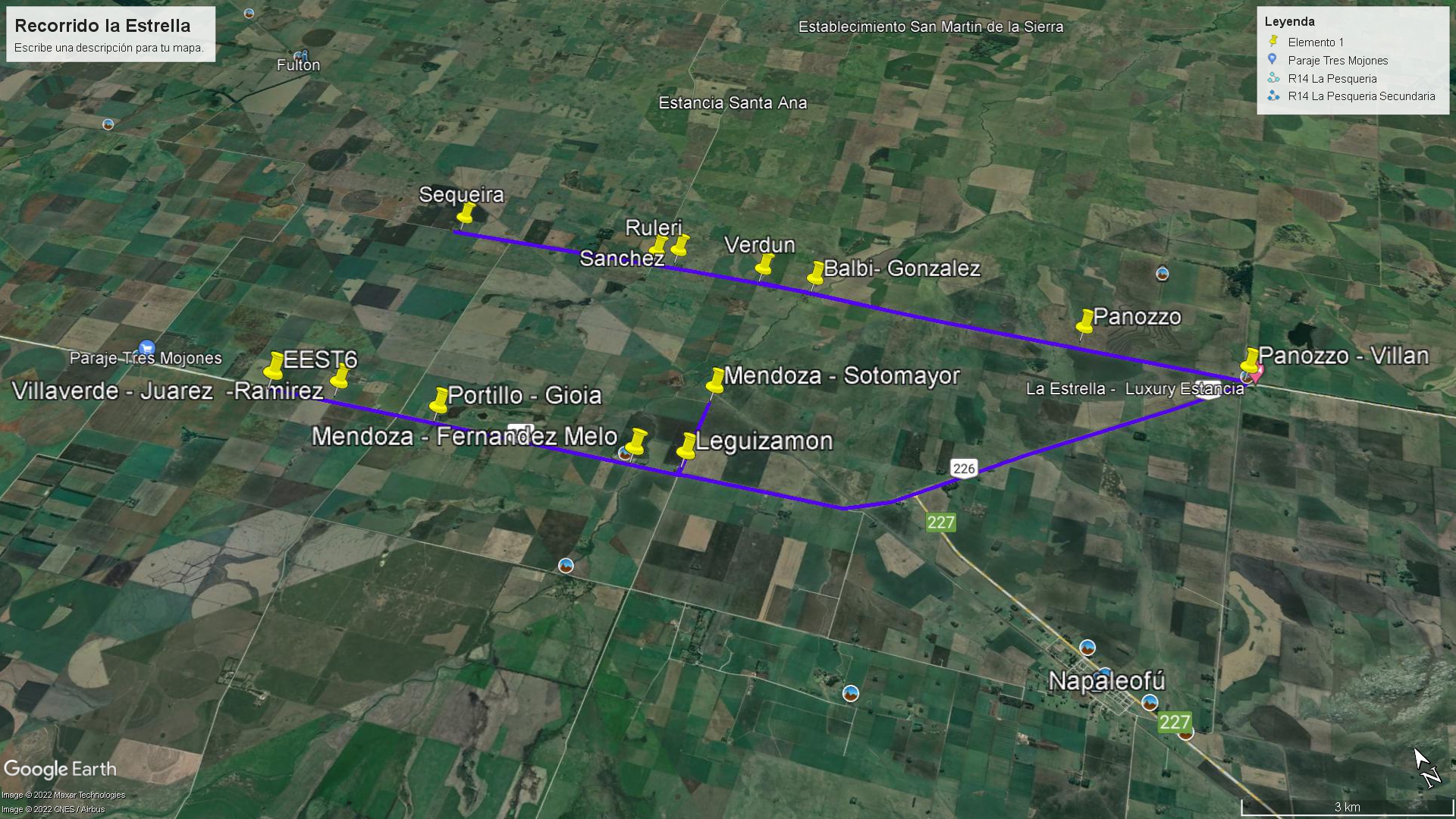 En este recorrido hay un total de 17 alumnos. Su trayecto es de 40 km, consta de un camino de tierra con dificultades. Gran parte del recorrido tiene señal. El alumno que tiene más distancia desde la casa hasta la parada es de 6 km.
