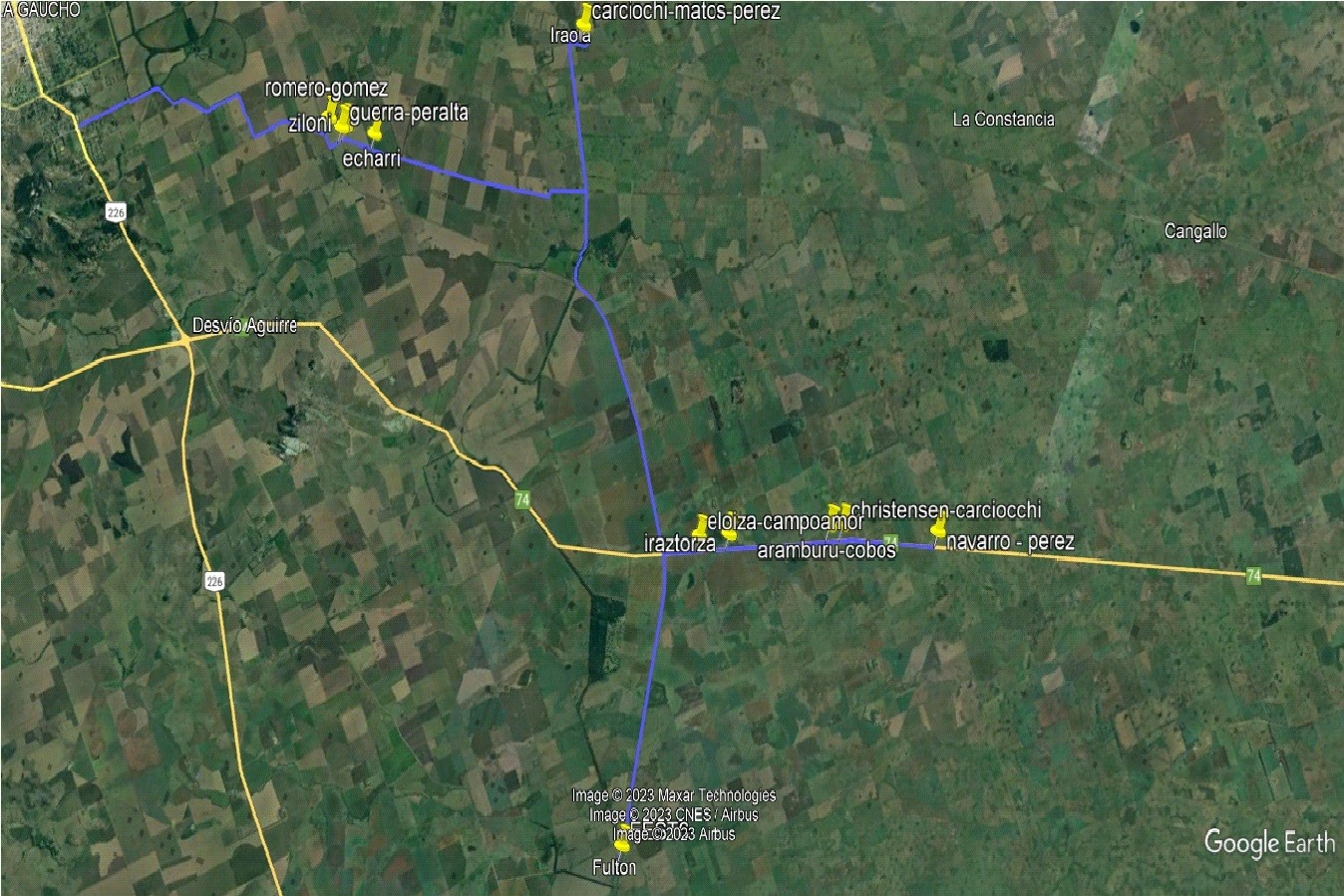 En este recorrido hay un total de 26 alumnos. Su trayecto completo de (ida + vuelta + mediodía) es de 240 km, consta con un camino mixto (entoscado y ruta), se encuentra en buenas condiciones. Gran parte del camino tiene